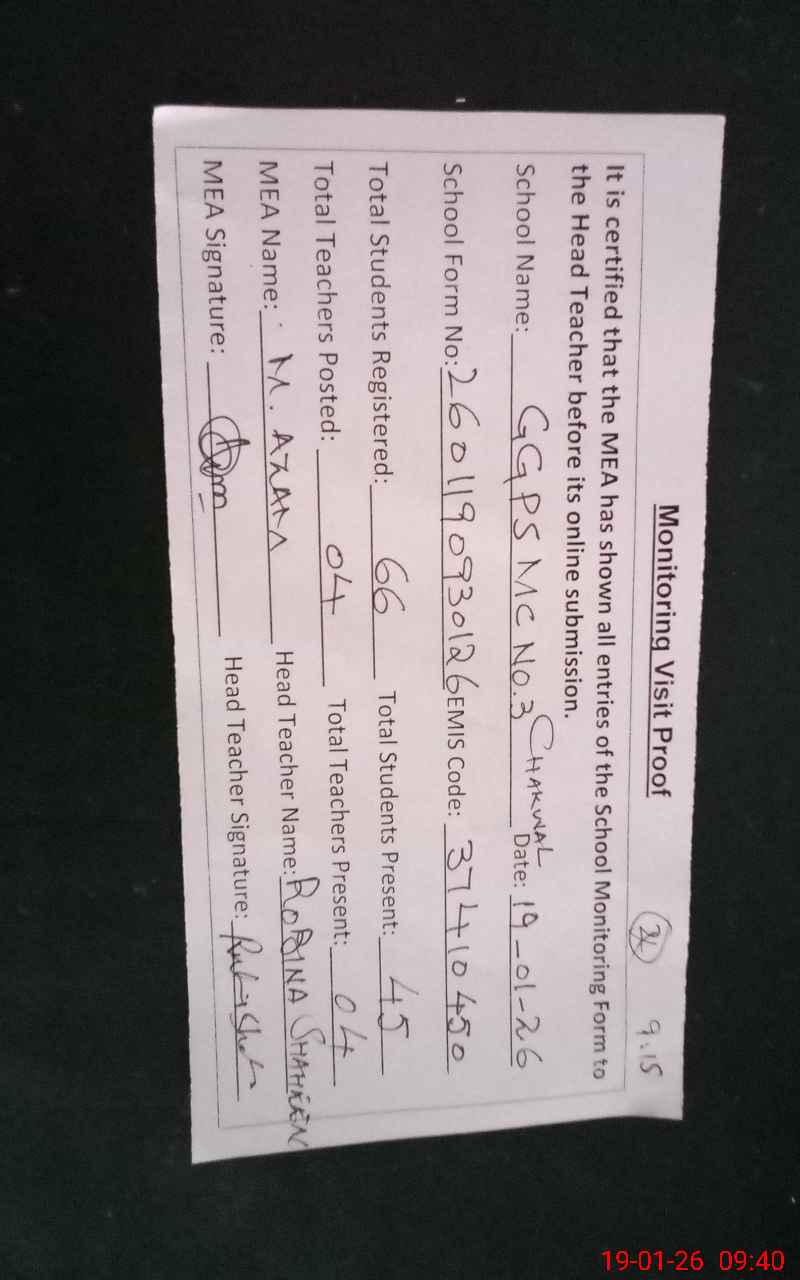 | EMIS Code: 37410450 | Name of School: GGPS MC NO. 3 CHAKWAL | |||