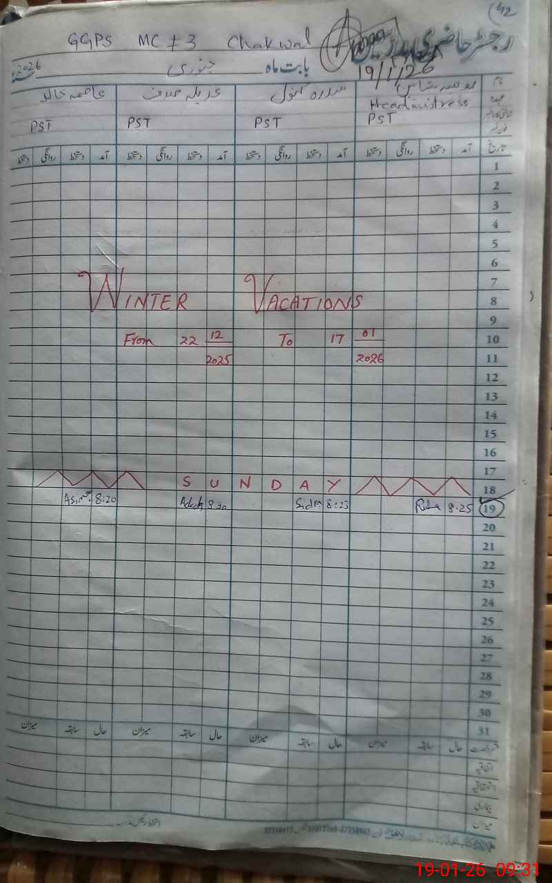 | District: CHAKWAL | Tehsil: CHAKWAL | Markaz: CHAKWAL1-FEMALE | Level: Primary | |
