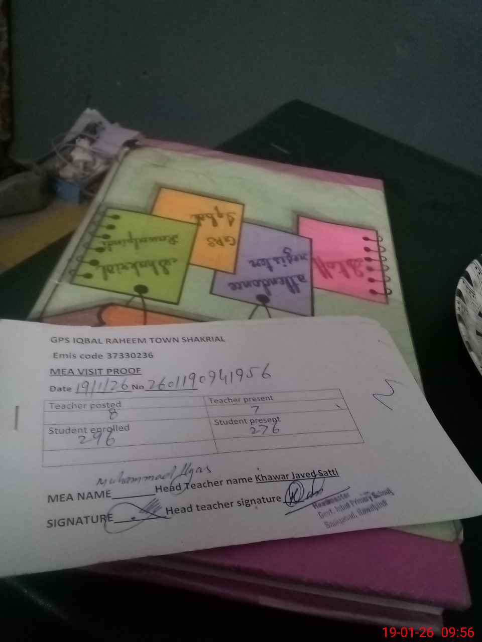 | EMIS Code: 37330236 | Name of School: GPS IQBAL RAHIM TOWN | |||