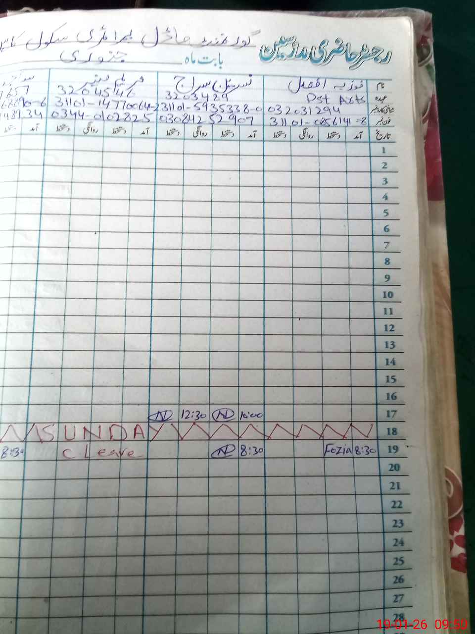 | CNIC | Full Name | Designation | R/C | Absence During Last Calender Month |