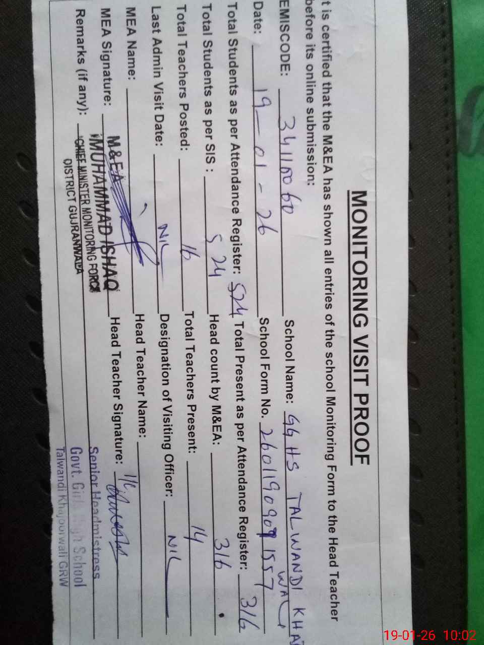 | EMIS Code: 34110060 | Name of School: GGHS TALWANDI KHAJOOR WALI | |||