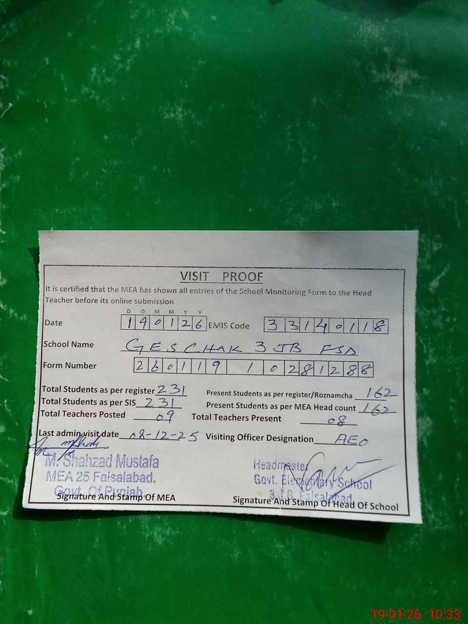 | EMIS Code: 33140118 | Name of School: GES CHAK 3 JB | |||