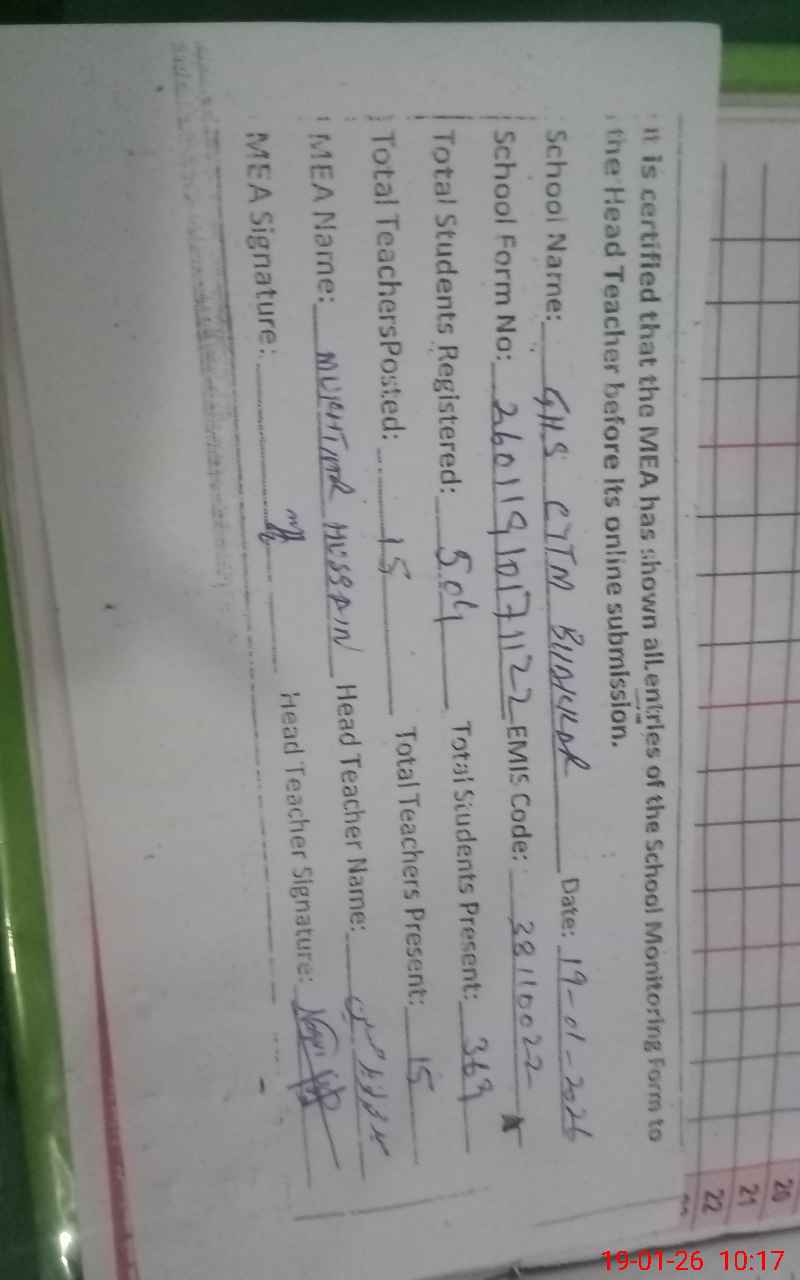 | EMIS Code: 38110022 | Name of School: GHS CTTM BHAKKAR MANDI TOWN | |||