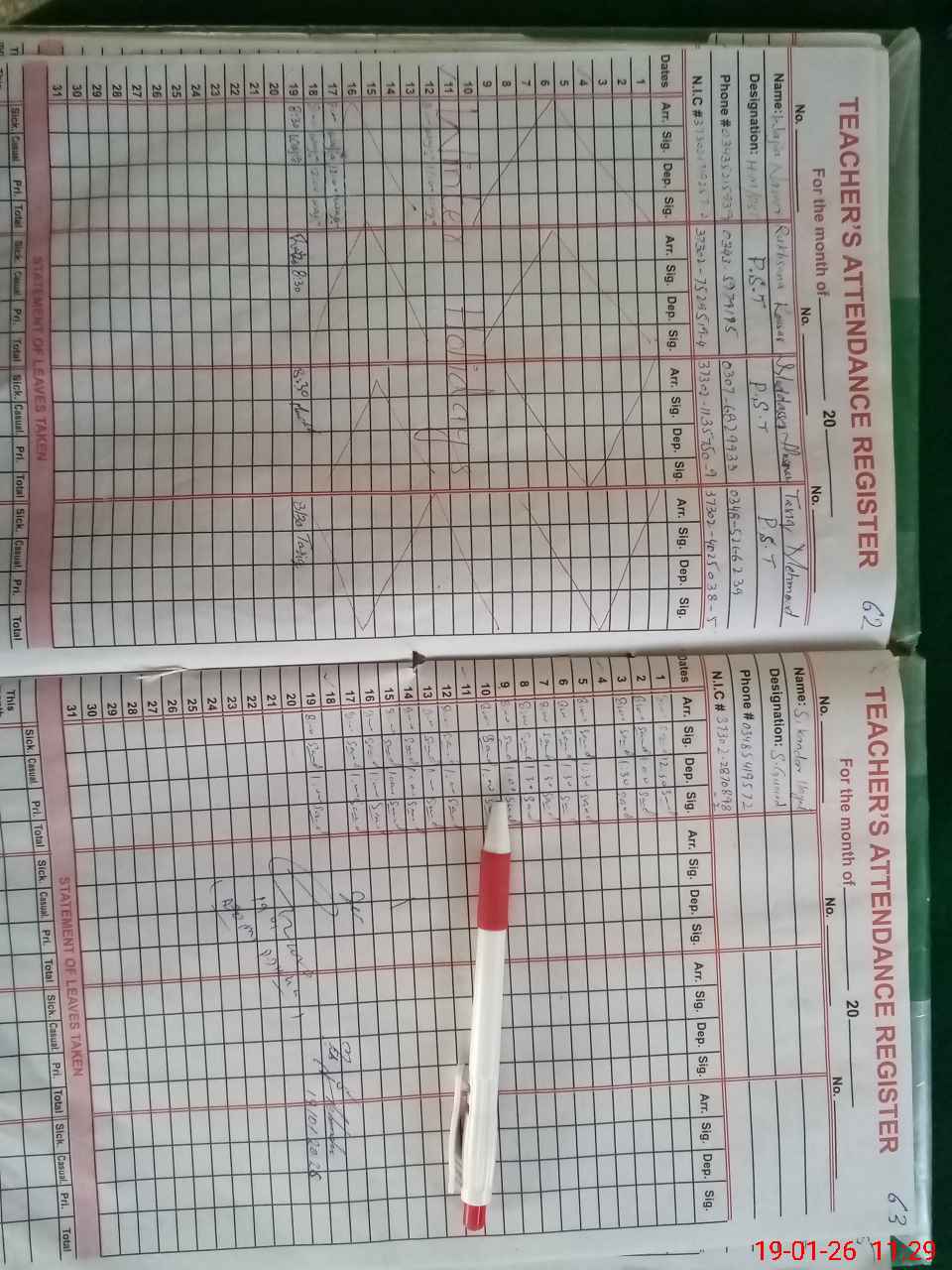 | CNIC | Full Name | Designation | R/C | Absence During Last Calender Month |