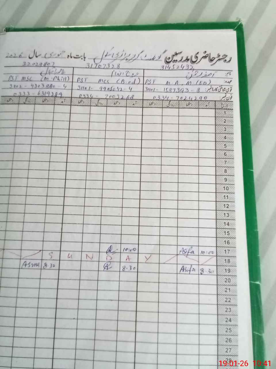 | Name: Ar**** In**** Designation: (School Headmaster's/Headmistress's) PST Phone/Cell Number: 03**** |