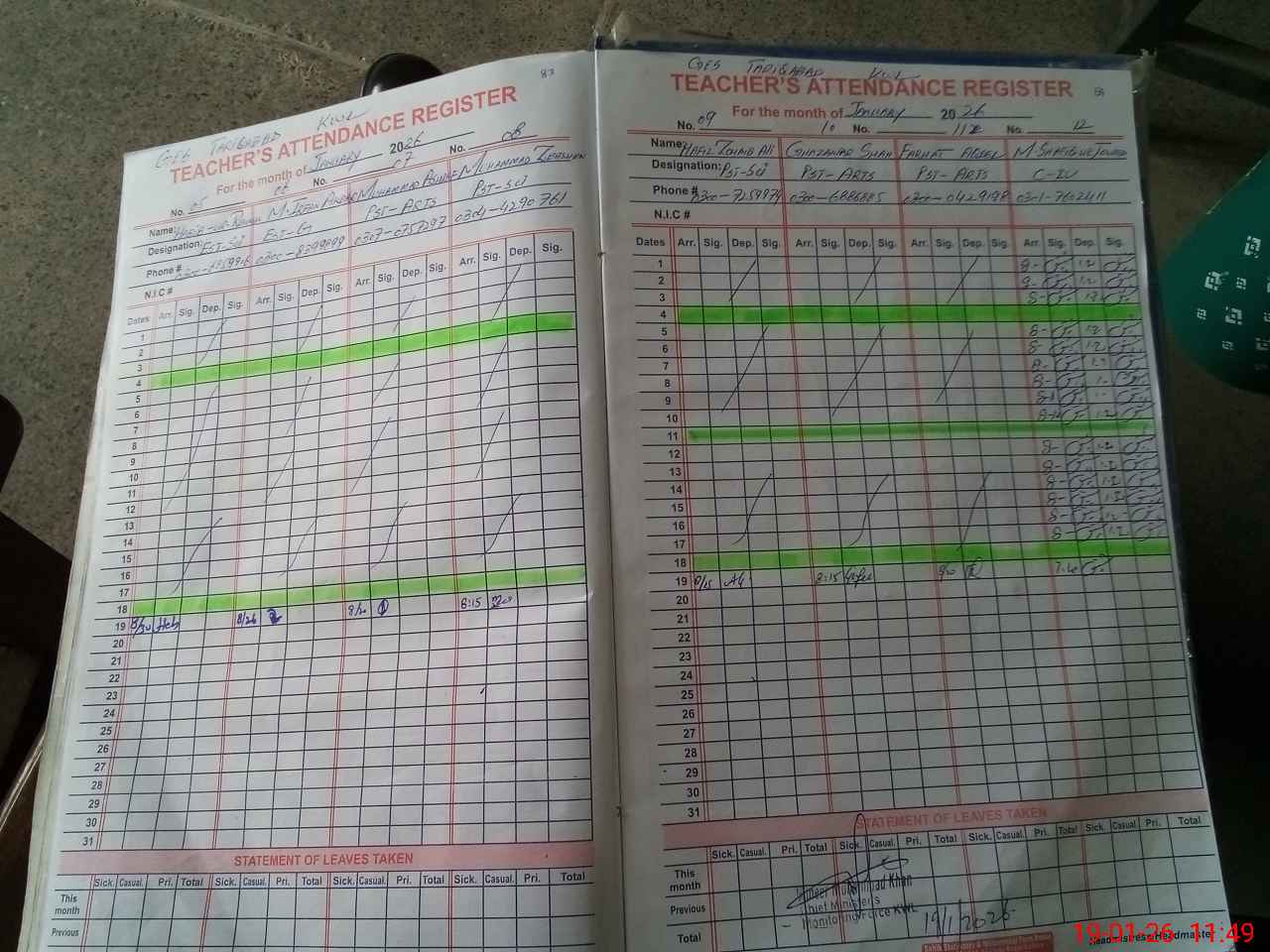 | CNIC | Full Name | Designation | R/C | Absence during last cal. month |
