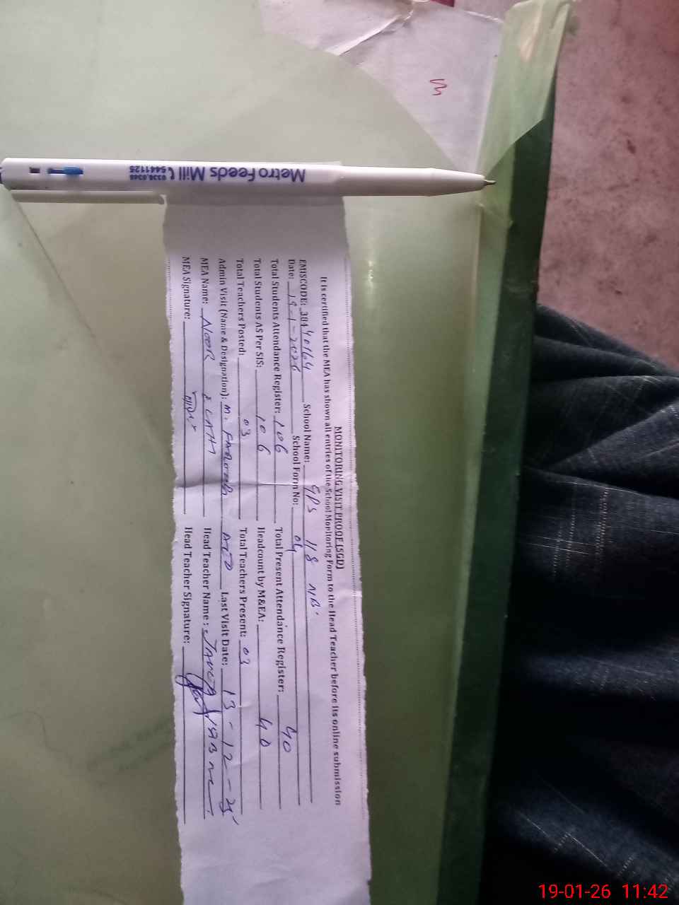 | Attendance Register | Head Teacher | MEA with School | Visit Proof |