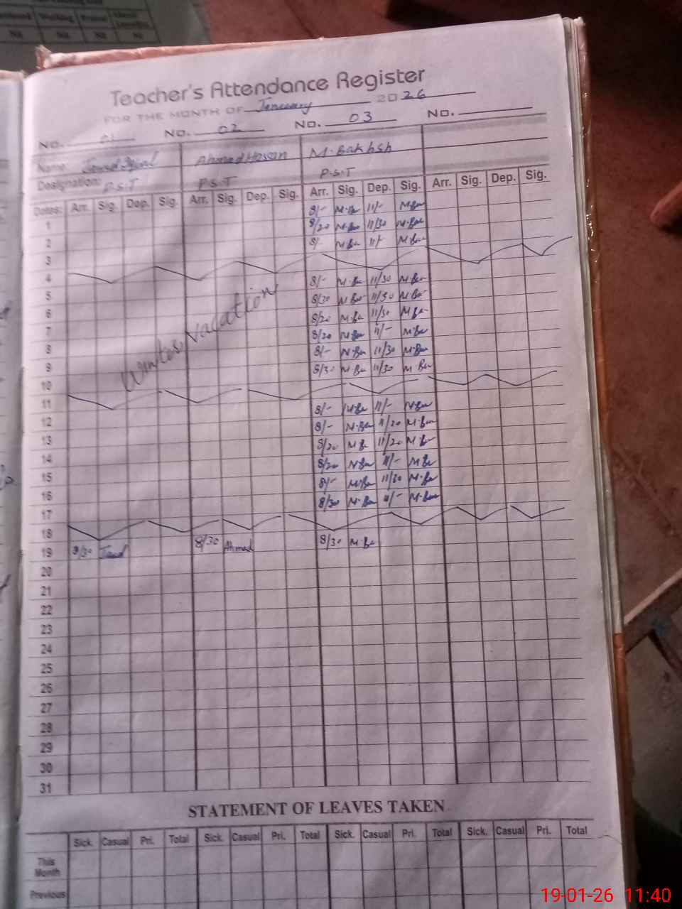 | Leave | Duty | Absent | Maternity | Medical | Ex- Pak |