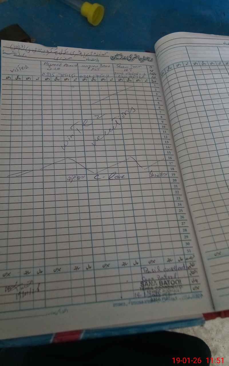 | CNIC | Full Name | Designation | R/C | Absence During Last Calender Month |