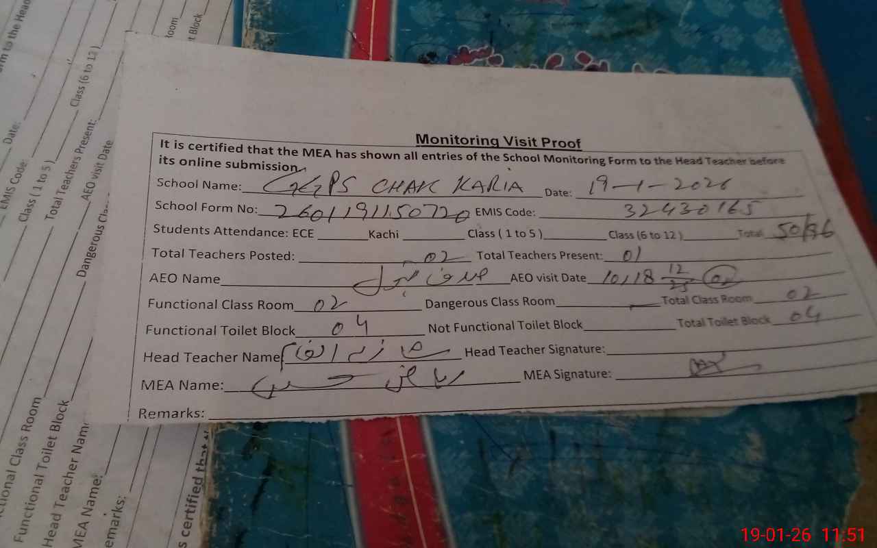 | EMIS Code: 32430165 | Name of School: GGPS CHAK KARIA | |||