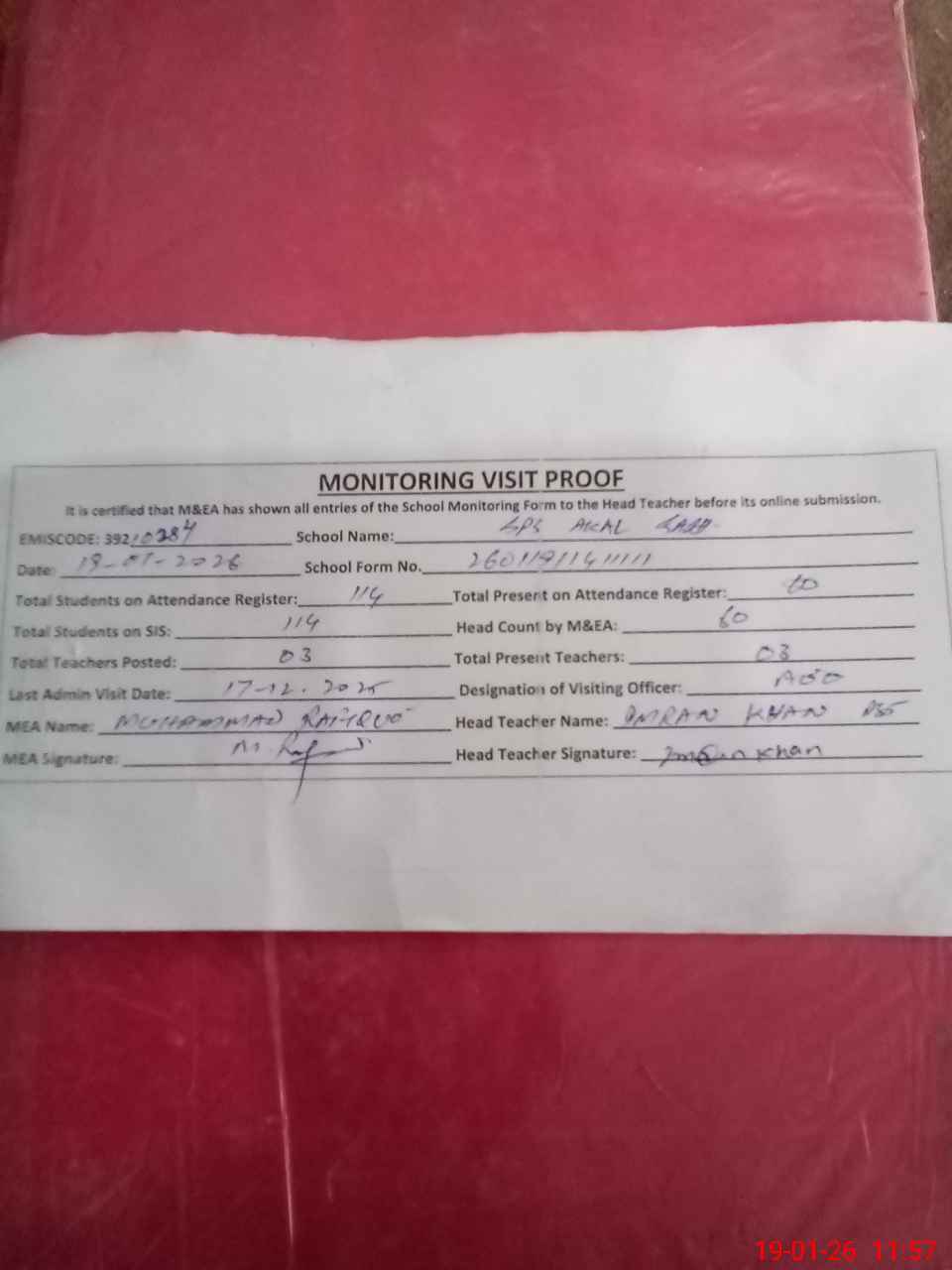 | Certified that this School was Inspected by the Undersigned MEA/DMO Today and the Information Stated Above is as Per Record. | |||||