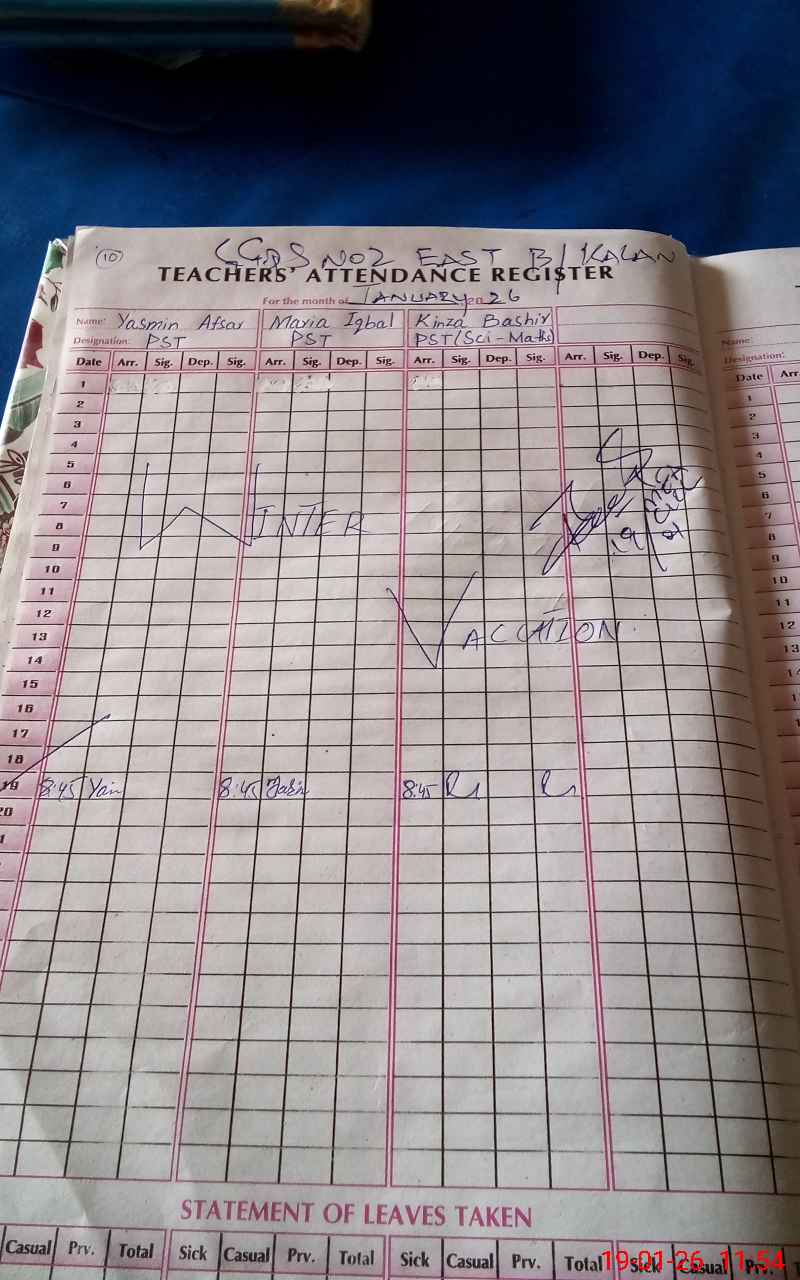 | Leave | Duty | Absent | Maternity | Medical | Ex- Pak |