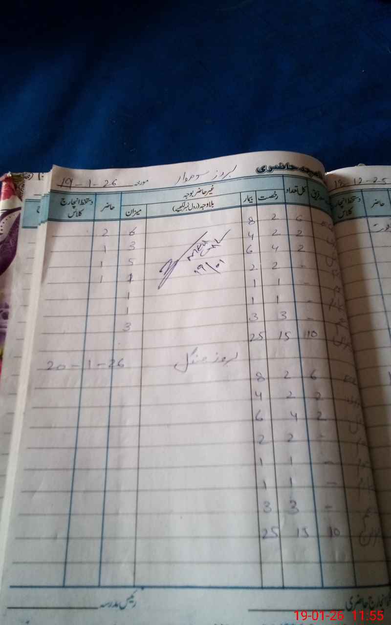 | CNIC | Full Name | Designation | R/C | Absence During Last Calender Month |