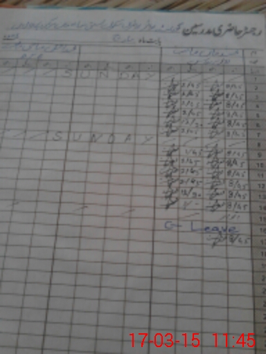 | CNIC | Full Name | Designation | R/C | Absence During Last Calender Month |
