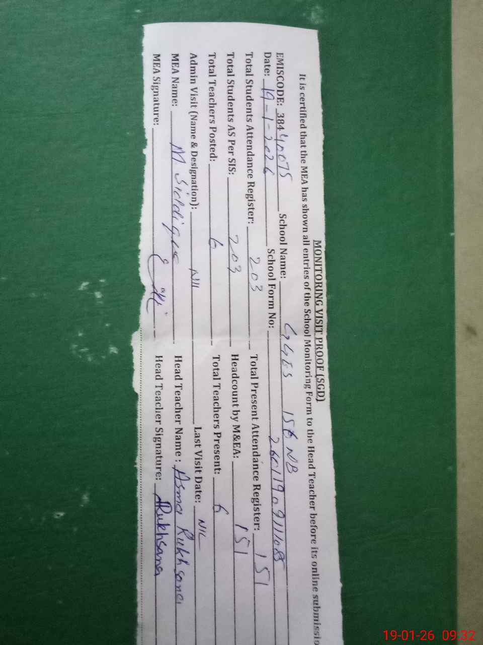 | Certified that this School was Inspected by the Undersigned MEA/DMO Today and the Information Stated Above is as Per Record. | |||||