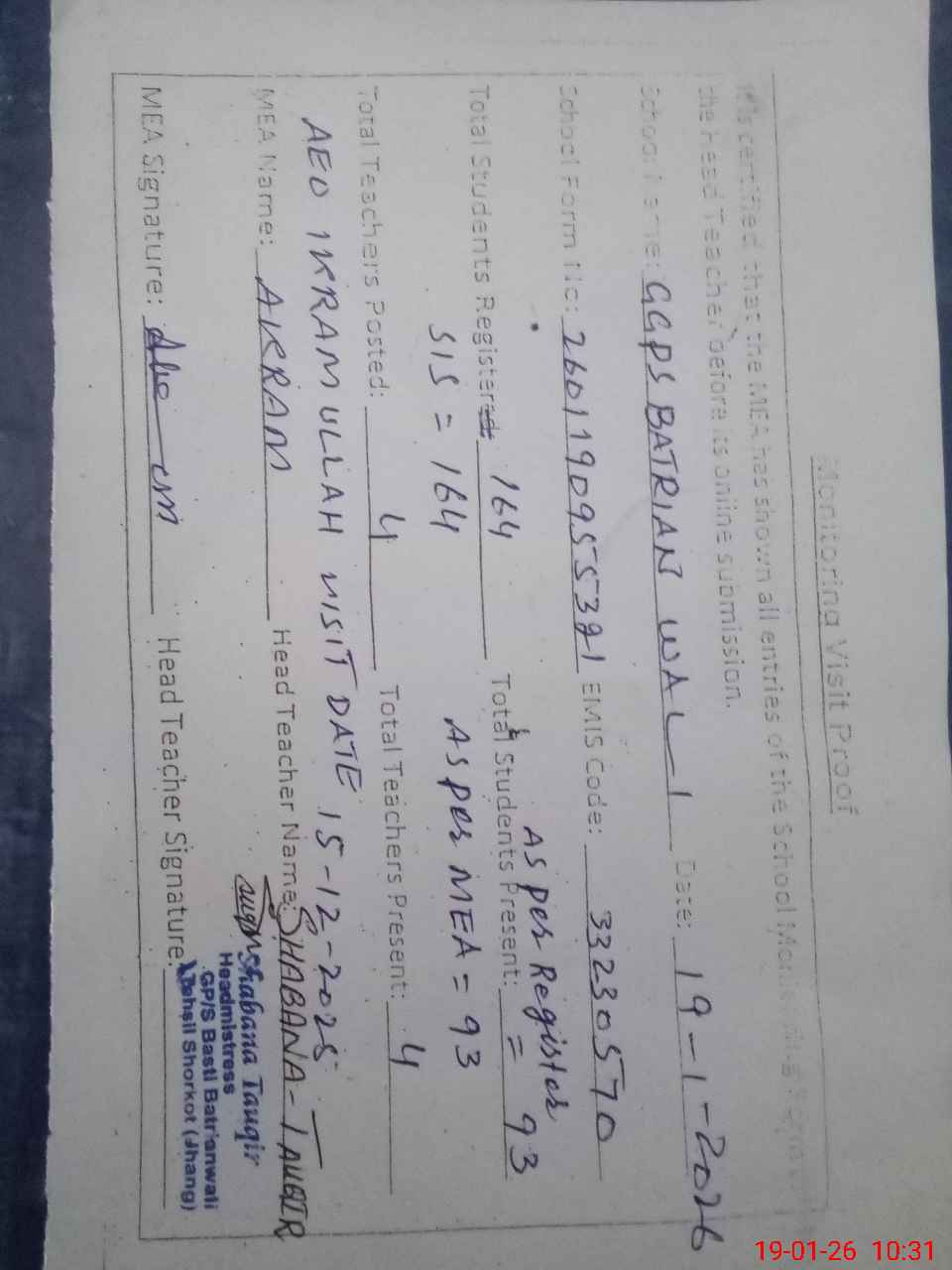 | EMIS Code: 33230570 | Name of School: GGPS BATRIAN WALI | |||