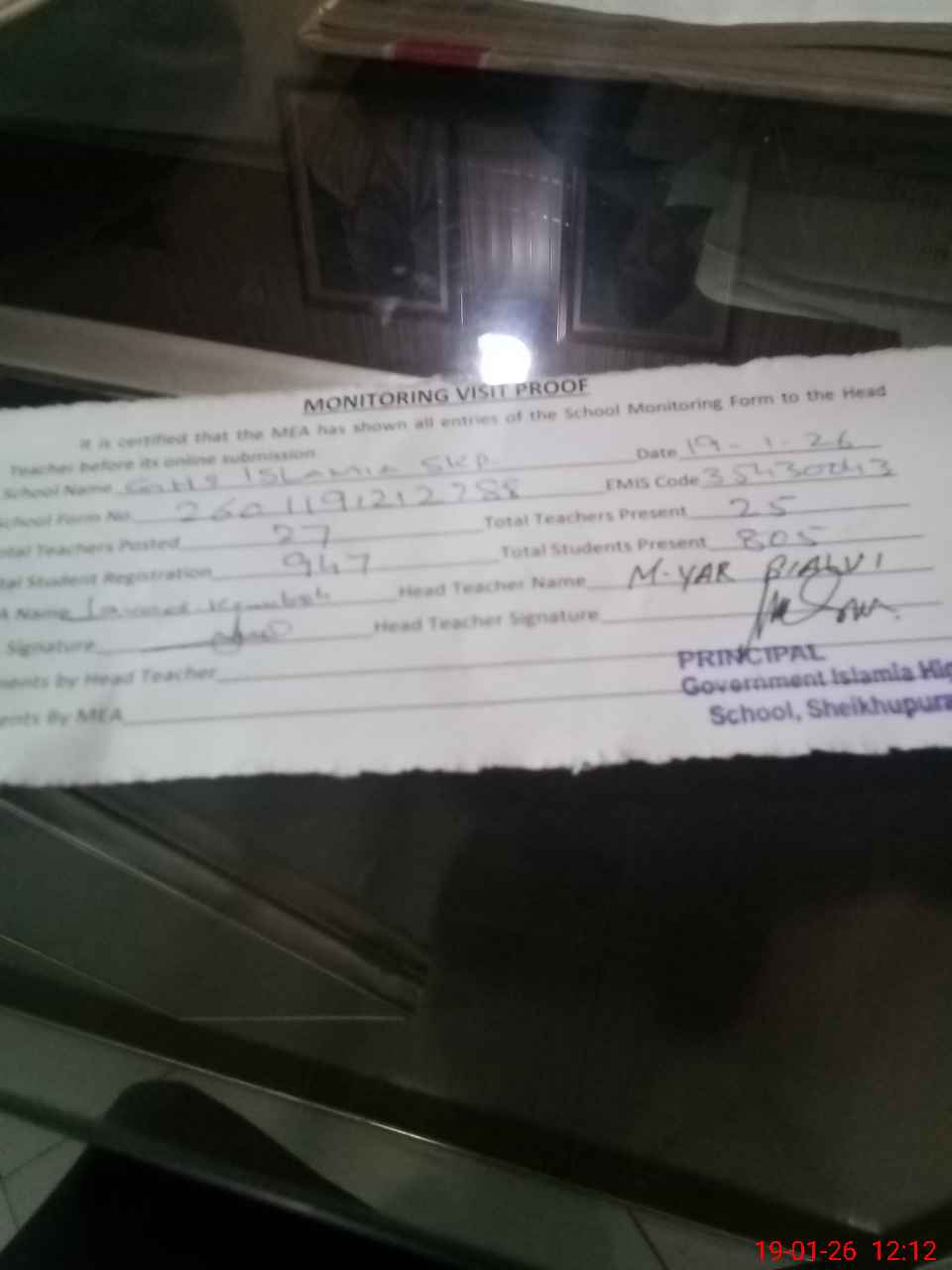 | Attendance Register | Head Teacher | MEA with School | Visit Proof |