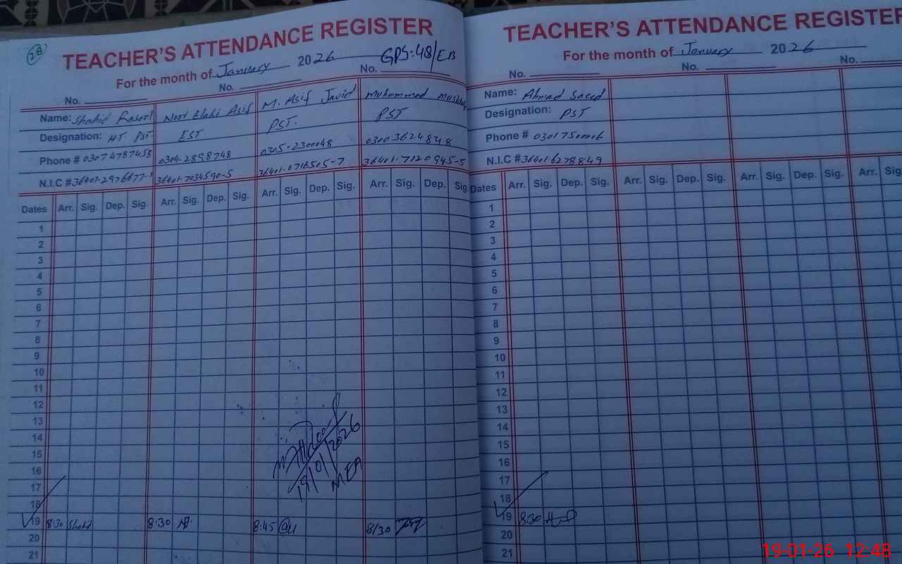 | Name: SH**** RA**** Designation: (School Headmaster's/Headmistress's) PST Phone/Cell Number: 03**** |