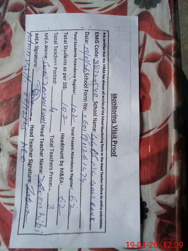 | EMIS Code: 38320540 | Name of School: GGPS MC GALI BANK | |||