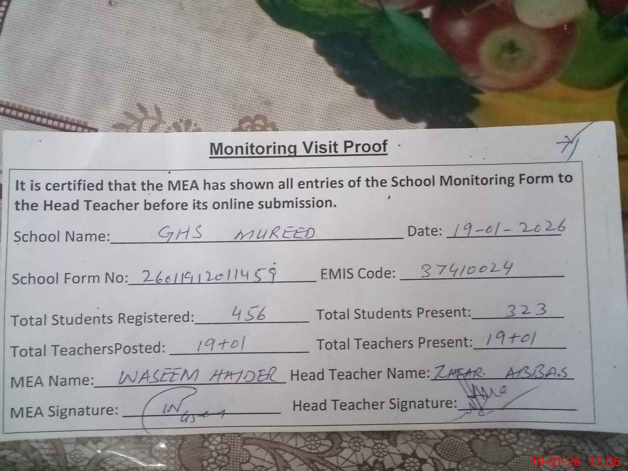 | EMIS Code: 37410024 | Name of School: GHS MUREED | |||