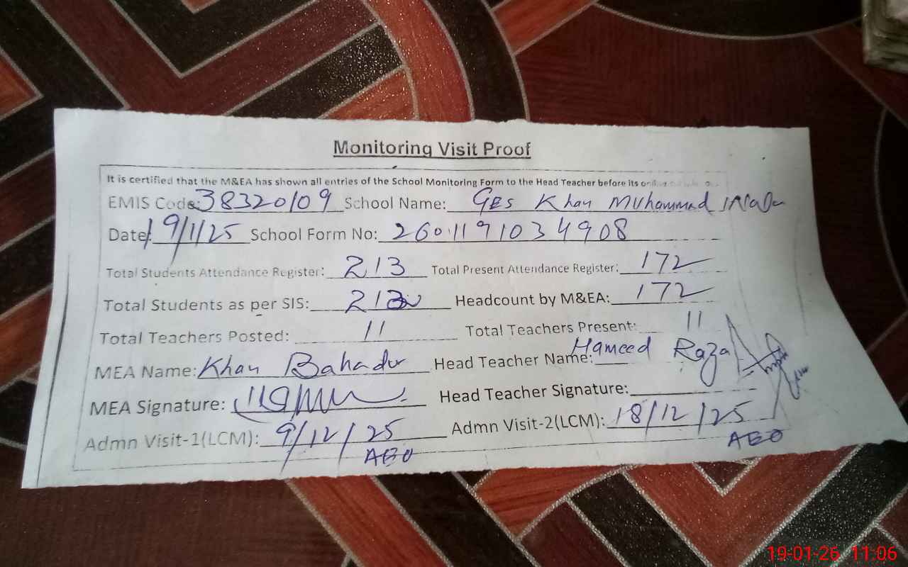 | EMIS Code: 38320109 | Name of School: GES KHAN MOHAMMAD WALA | |||
