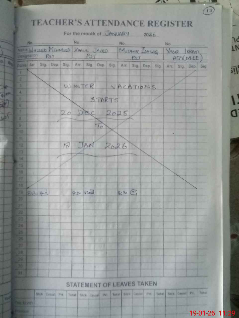 | Monitoring Date: 19-01-2026 | Start Time: 19-01-2026 11:23 AM | End Time: 19-01-2026 11:33 AM | Name of MEA: SH**** AK**** | |