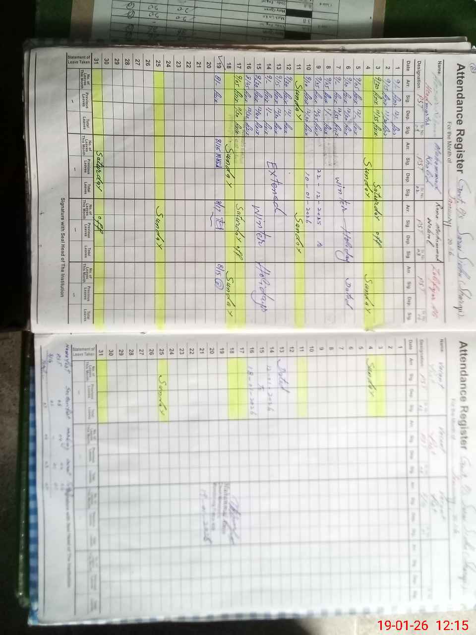 | Leave | Duty | Absent | Maternity | Medical | Ex- Pak |