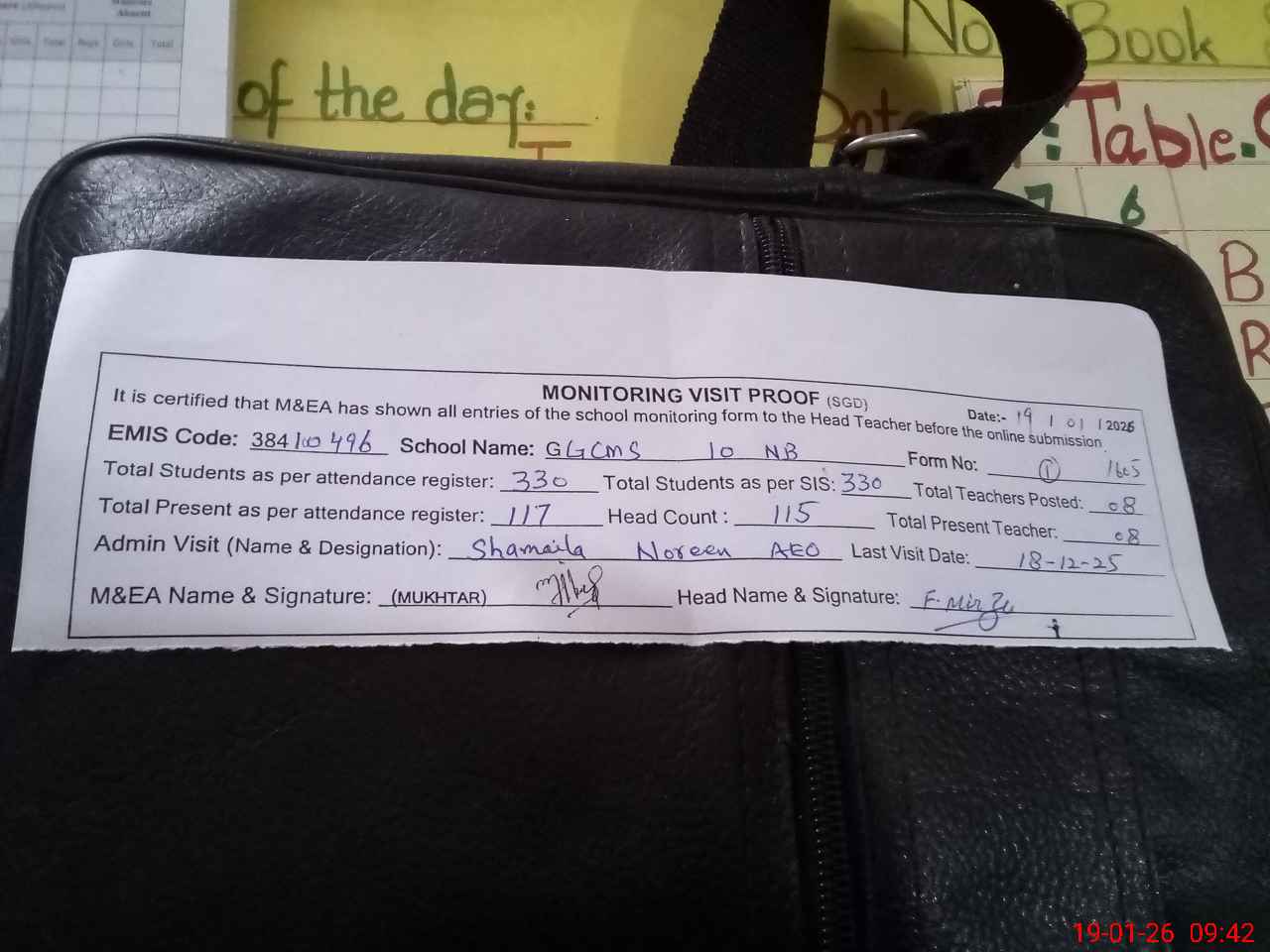 | EMIS Code: 38410496 | Name of School: GGCMS CHAK NO.10 NB | |||