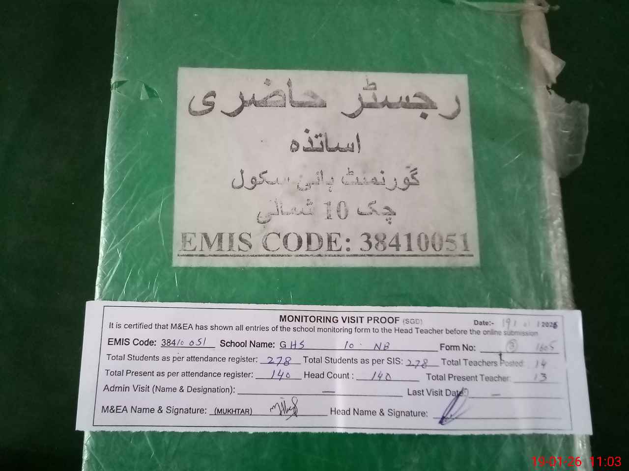 | Attendance Register | Head Teacher | MEA with School | Visit Proof |