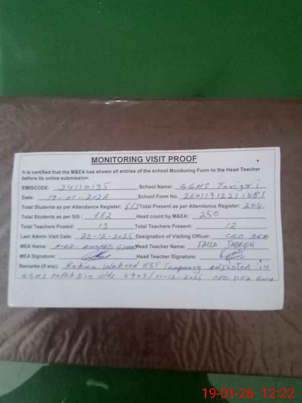 | EMIS Code: 34110135 | Name of School: GGHS TARIGRI | |||
