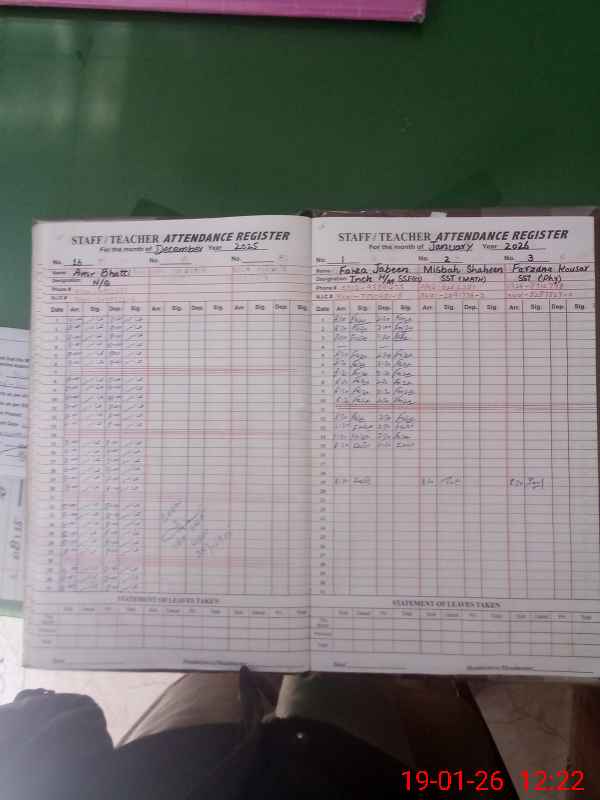 | Remarks (Use Separate Page if Required): Attendance of teaching staff and students on SIS Software is not updated NSB Record Register is not updated for the month of December, 2025 Robina Waheed EST is temporary adjusted in GGHS Fateh Din Rahwali vide CEO DEA Gujranwala Office Order No 4903 dated 11 December 2025 for 89 days Data as per provided by School Staff and found during physical visit | |||||