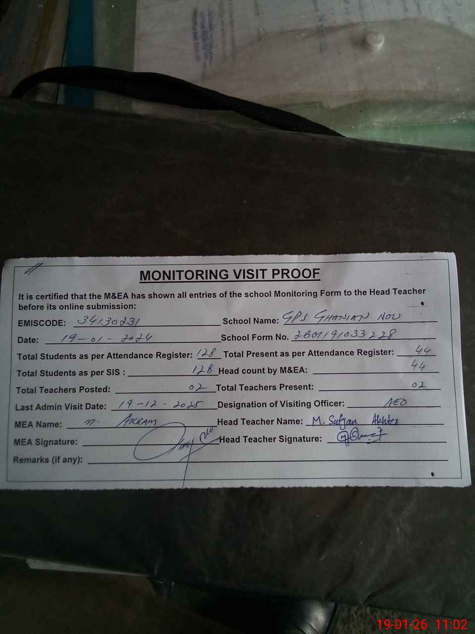 | EMIS Code: 34130231 | Name of School: GPS GHANIAN NOU | |||