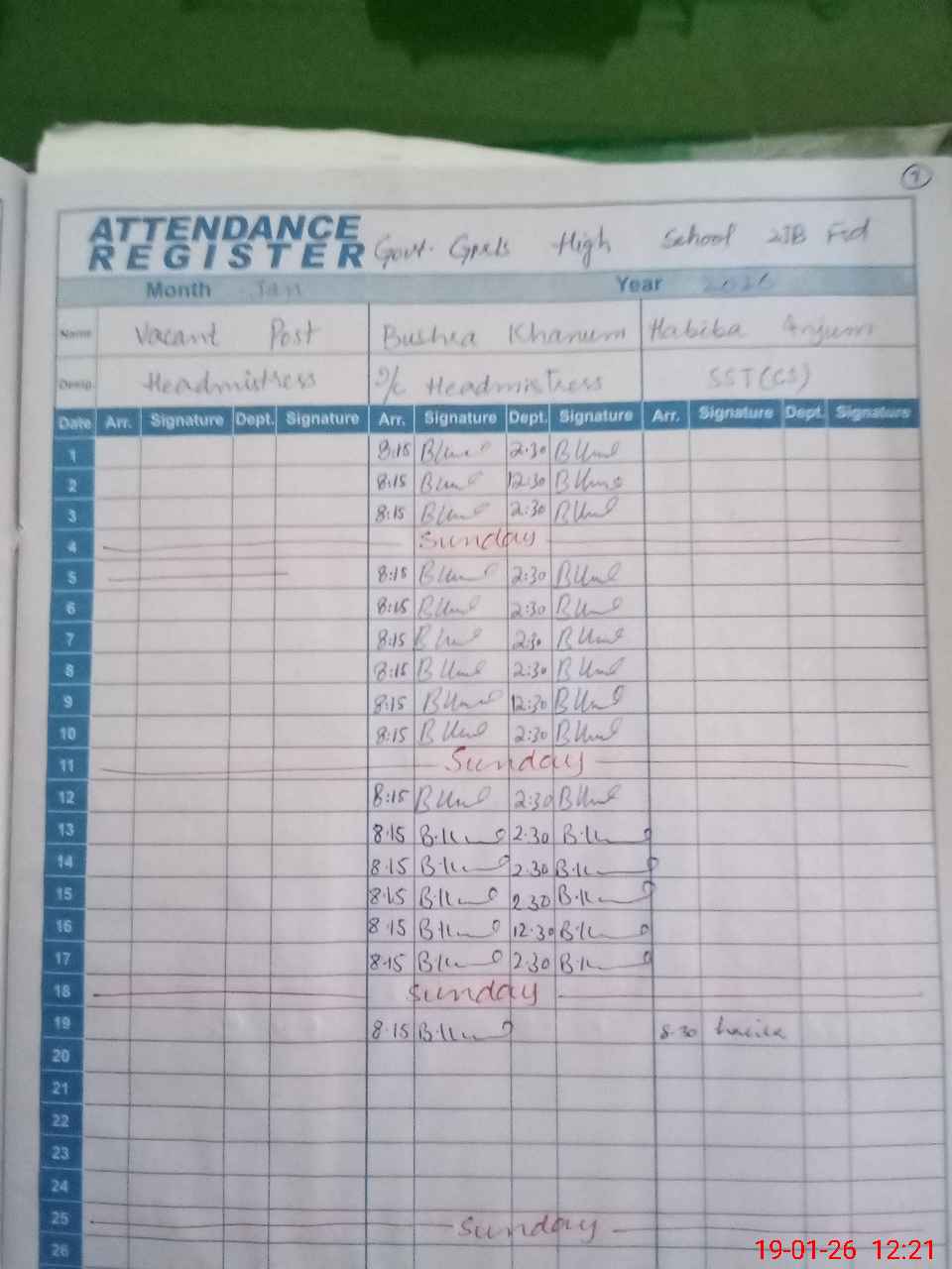 | Name: Sh**** Ak**** Designation: (School Headmaster's/Headmistress's) Headmistress Phone/Cell Number: 03**** |
