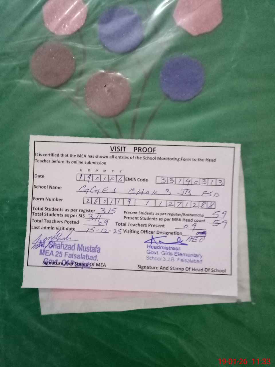 | EMIS Code: 33140313 | Name of School: GGES CHAK 3 JB | |||