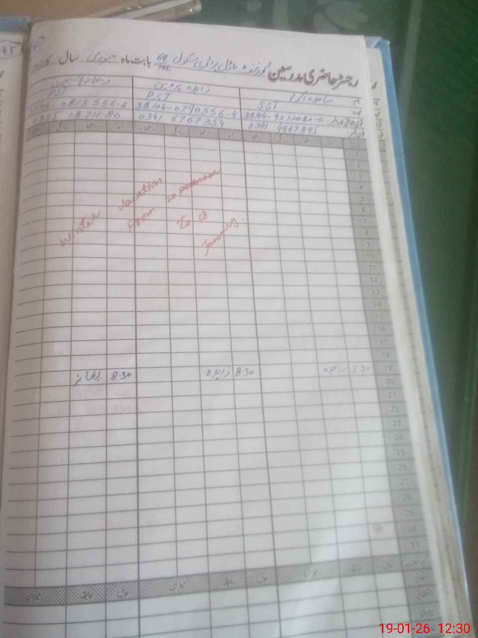 | Name: SA**** AK**** Designation: (School Headmaster's/Headmistress's) S.S.T.(SC) Phone/Cell Number: 03**** |