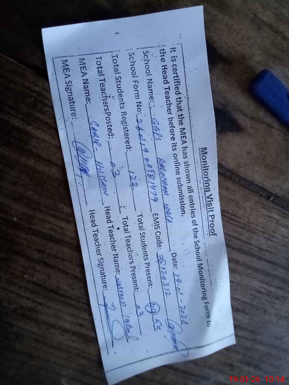 | EMIS Code: 38120312 | Name of School: GGPS BALOCHAN WALA | |||