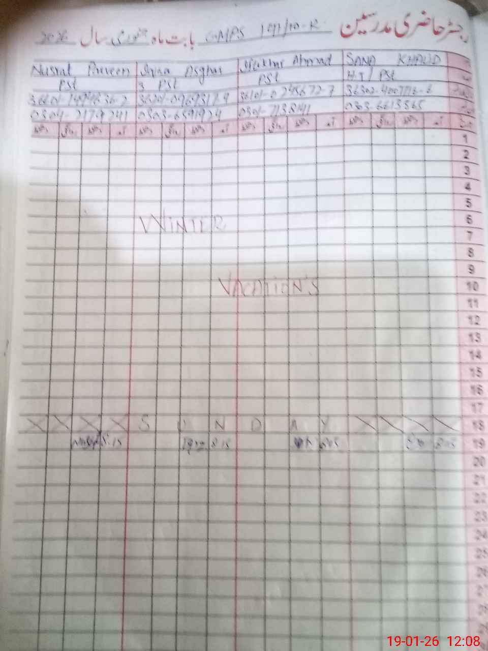 | CNIC | Full Name | Designation | R/C | Absence During Last Calender Month |