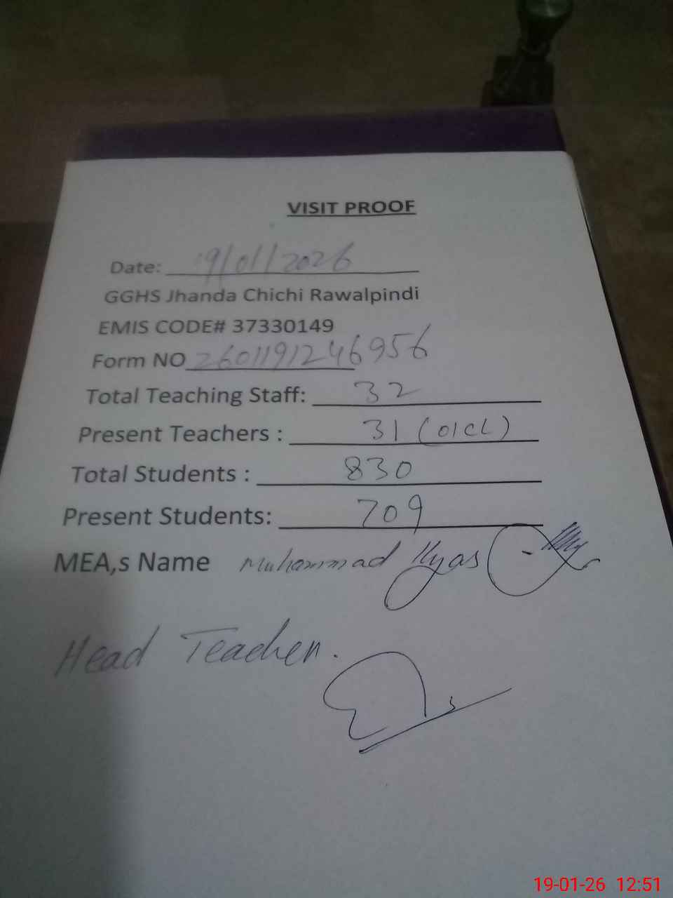 | EMIS Code: 37330149 | Name of School: GGHS JHANDA CHICHI | |||