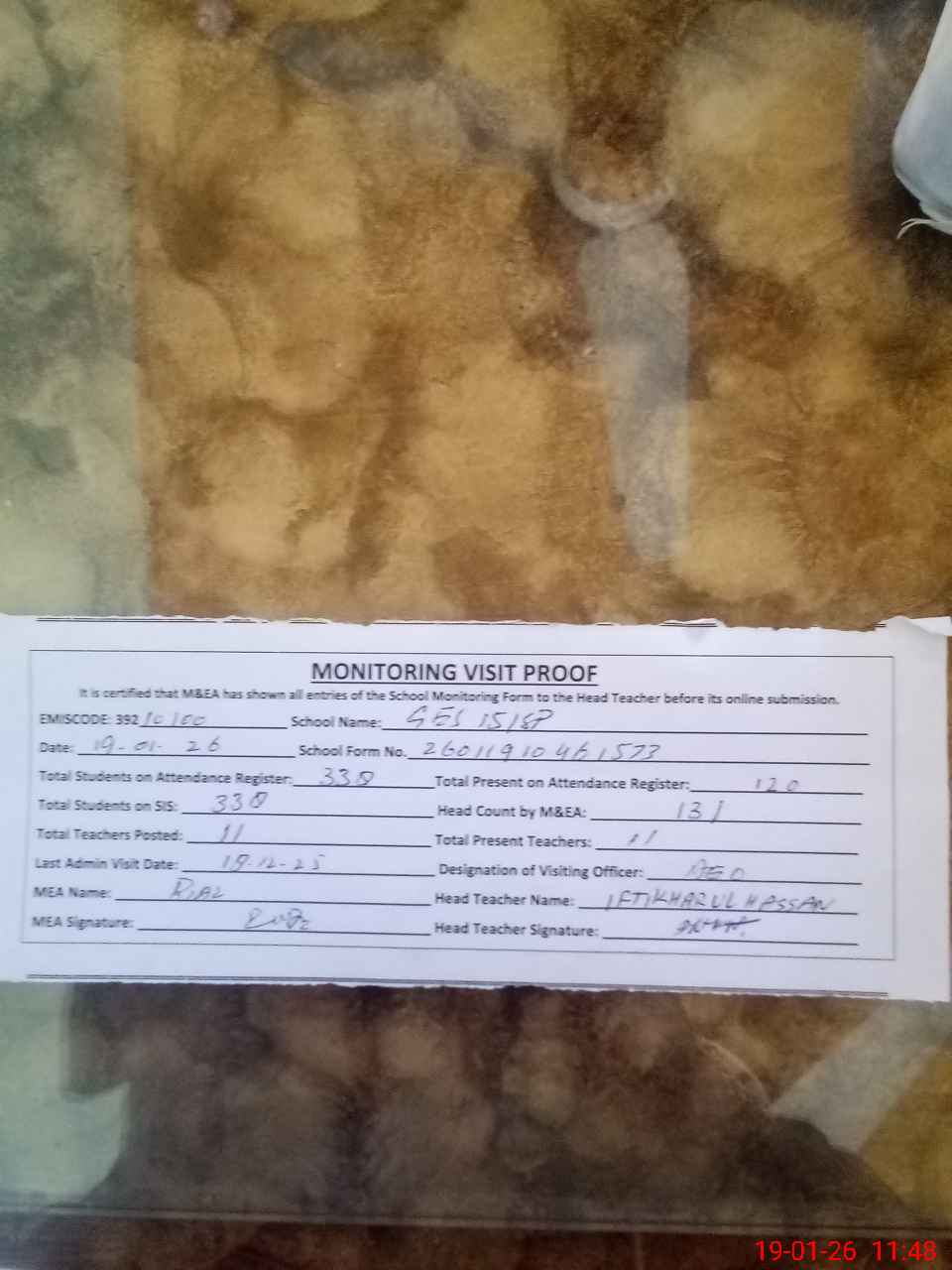 | EMIS Code: 39210100 | Name of School: GES 15/SP P.O PAKPATTAN | |||