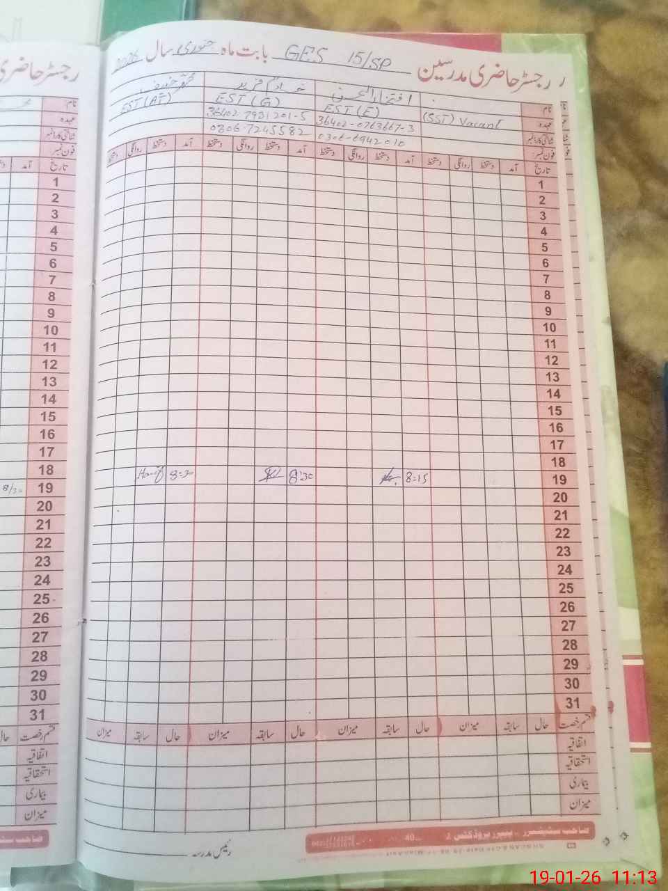 | Name: Kh**** Fa**** Designation: (School Headmaster's/Headmistress's) EST Phone/Cell Number: 03**** |