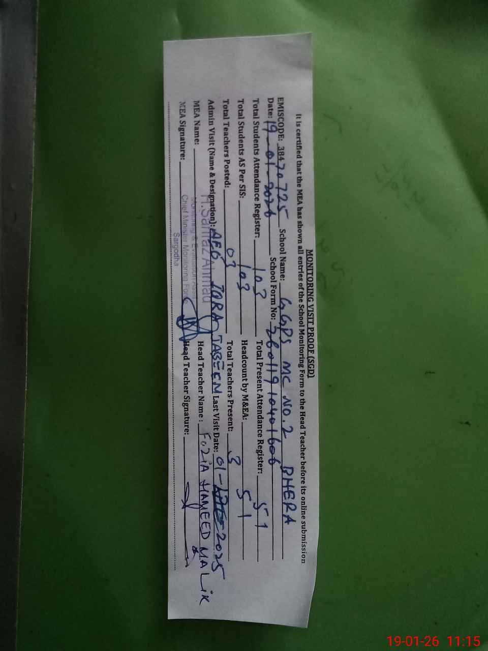 | EMIS Code: 38470725 | Name of School: GGPS MC NO.2 BHERA | |||
