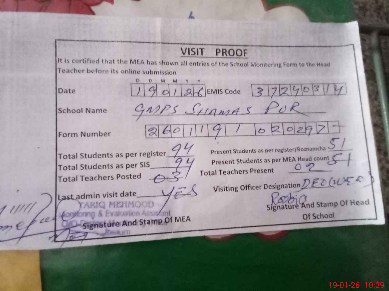 | EMIS Code: 37240314 | Name of School: GMPS SHAMAS PUR | |||