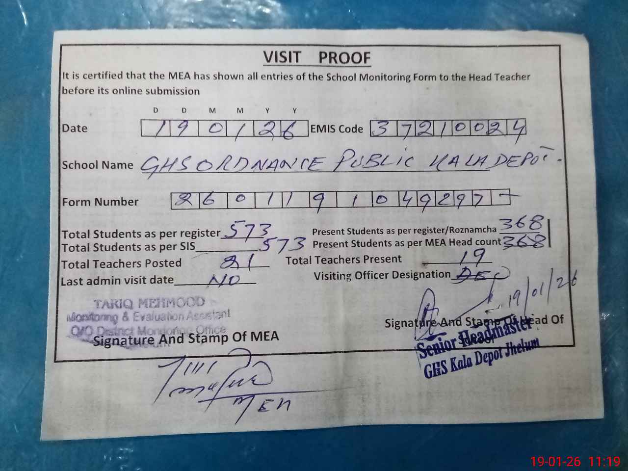 | EMIS Code: 37210024 | Name of School: GHS ORDINANCE PUBLIC KALA DEPOT | |||