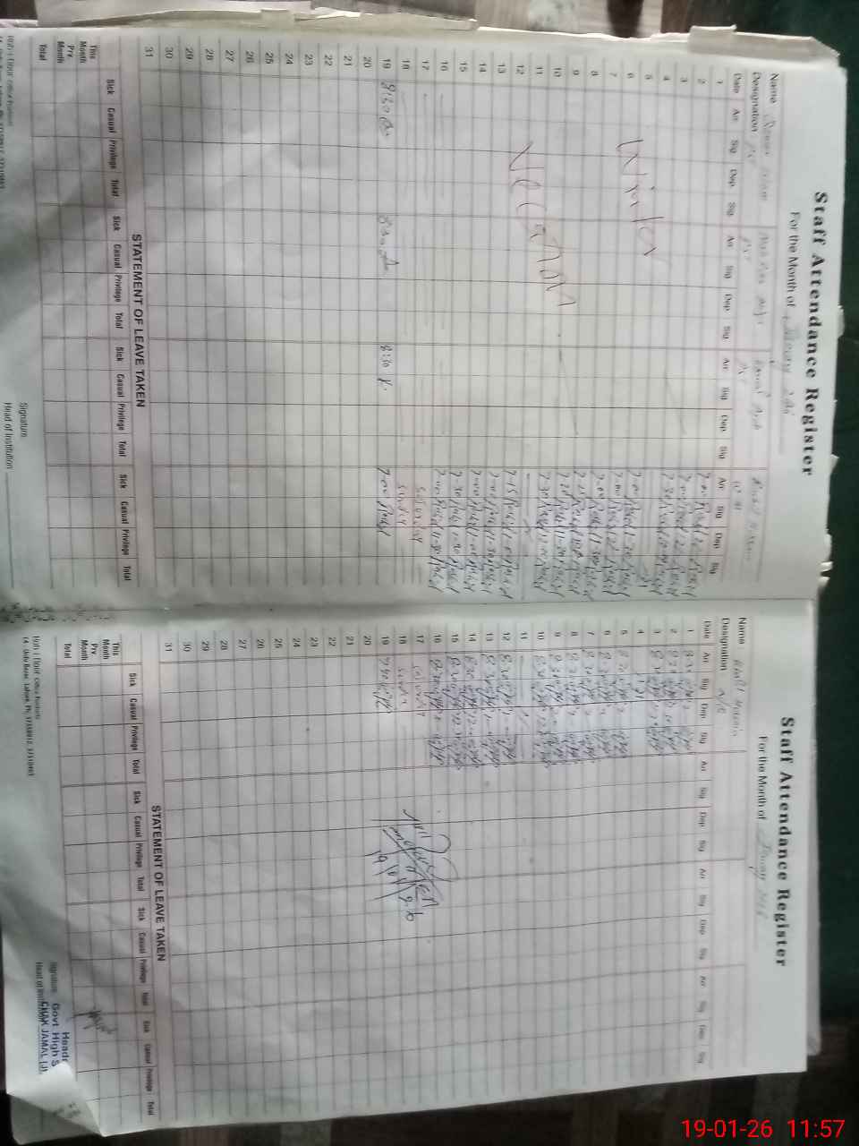 | CNIC | Full Name | Designation | R/C | Absence During Last Calender Month |