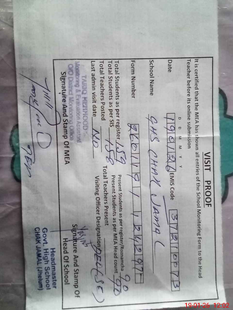 | EMIS Code: 37210073 | Name of School: GHS CHAK JAMAL | |||