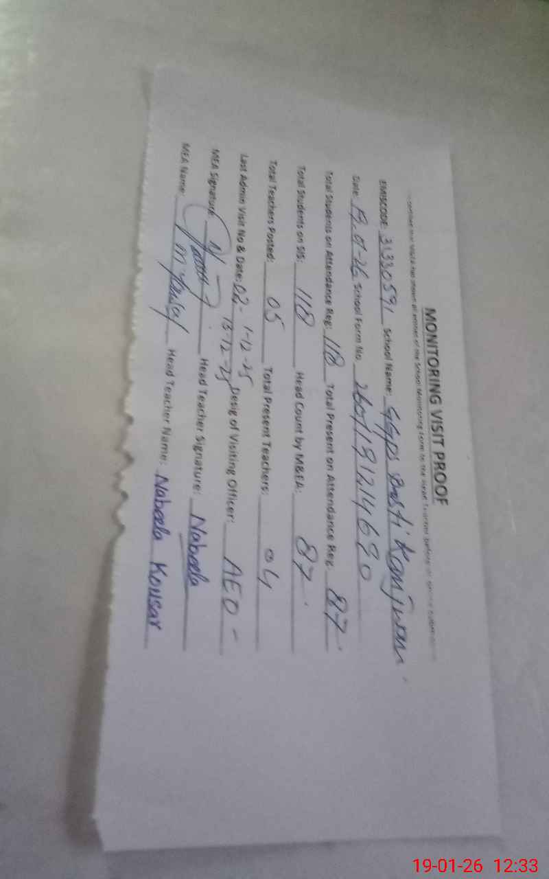 | Total no. of Classrooms: 3 No. of Classrooms Used for Teaching: 2 No. of Classrooms Storing Old Furniture, FTBs, etc: 0Comments if Any: Teacher Samia Rehman is return to her previous school but letter not available in school (marked absent) NSB record not shown |