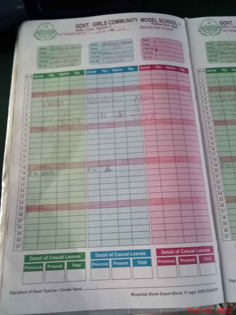 | CNIC | Full Name | Designation | R/C | Absence During Last Calender Month |