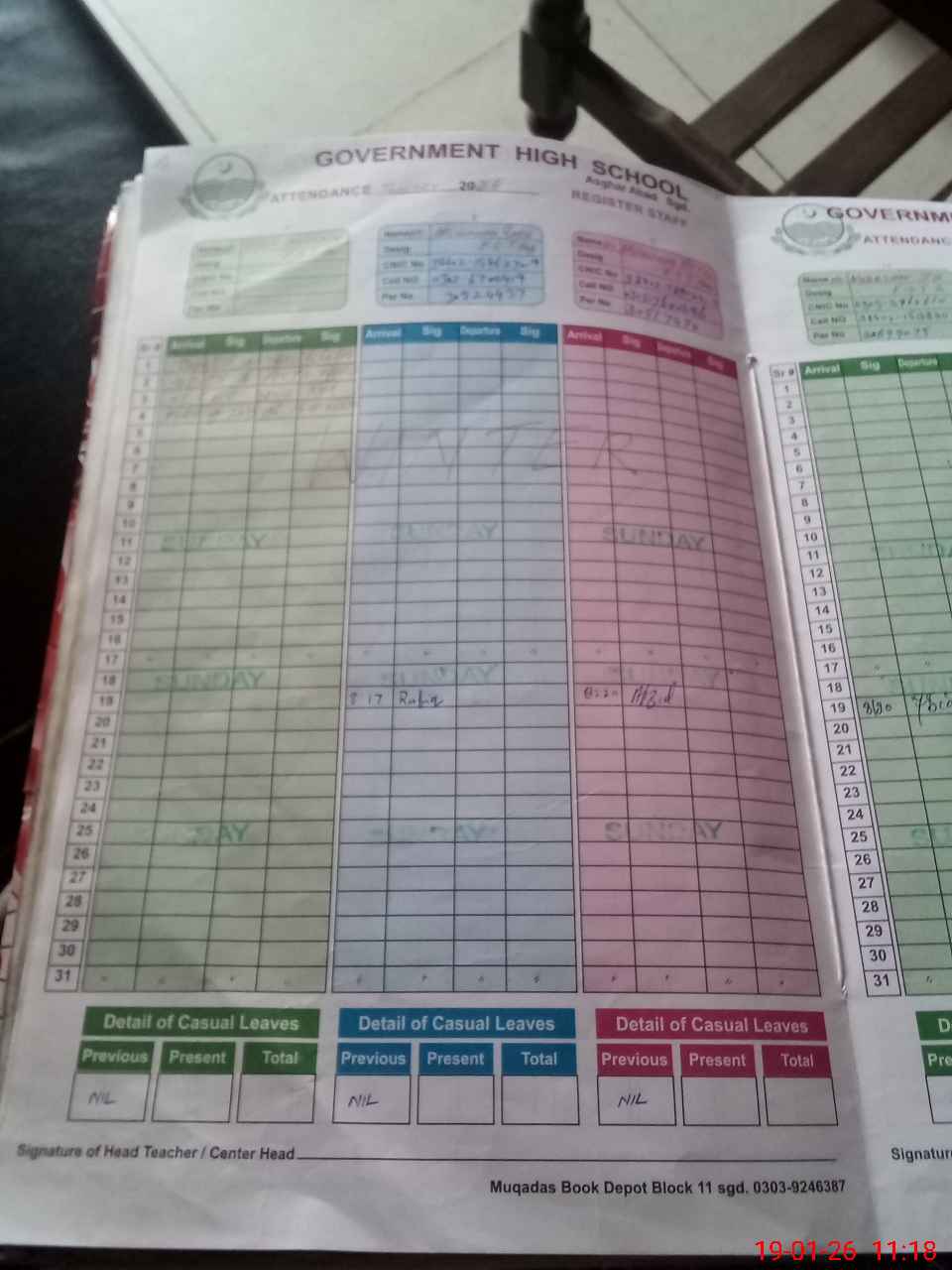 | CNIC | Full Name | Designation | R/C | Absence During Last Calender Month |