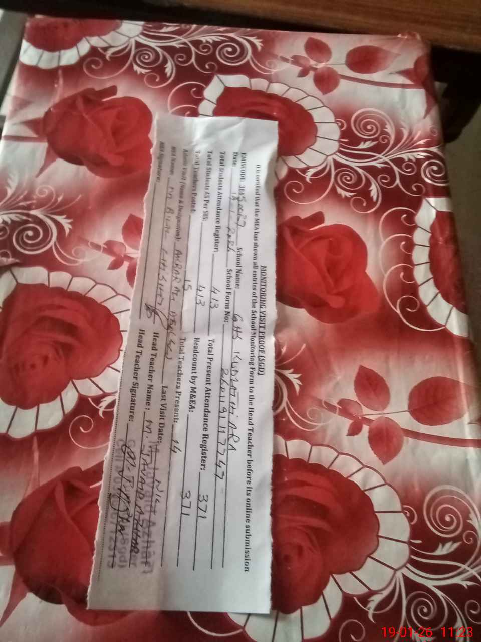 | Attendance Register | Head Teacher | MEA with School | Visit Proof |