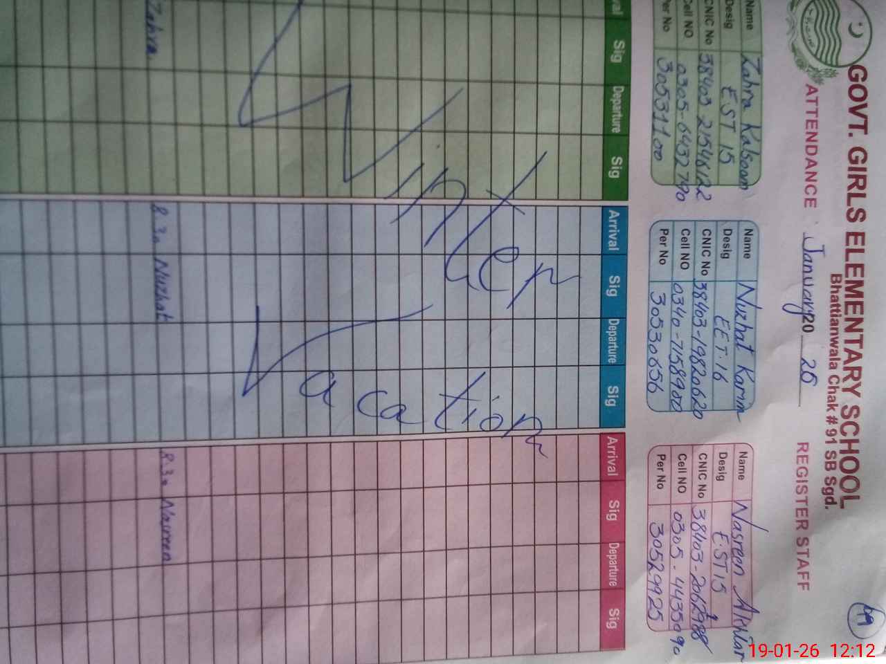 | Name: ZA**** ULNI**** Designation: (School Headmaster's/Headmistress's) S.S.T.(Arts) Phone/Cell Number: 03**** |